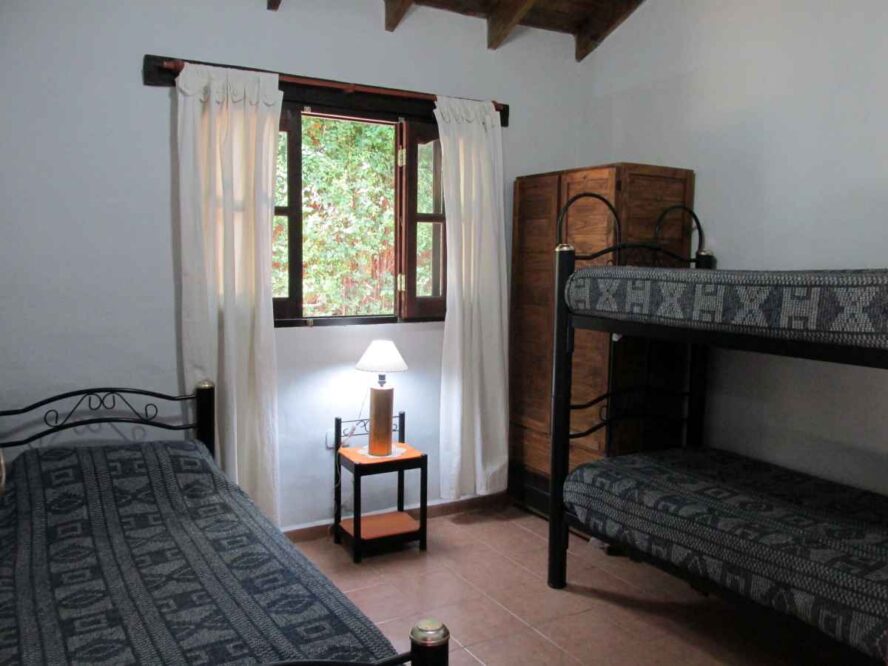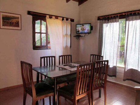 Las cabañas cuentan dos dormitorios, galería y parrilla individual, juego de mesa y sillas de jardín.