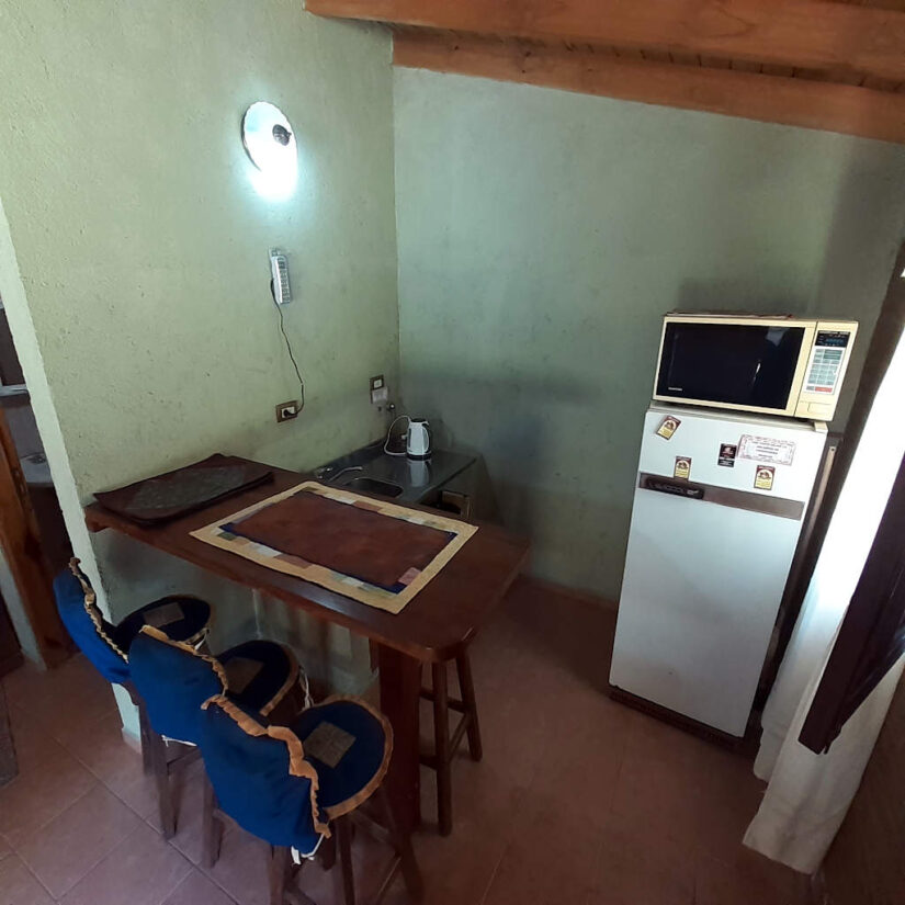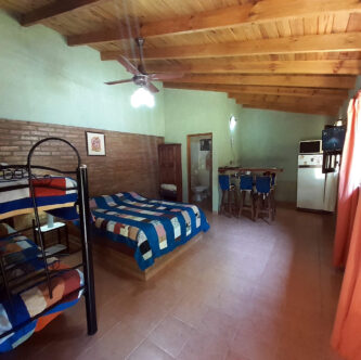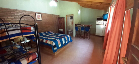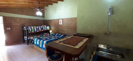 depto para 4 personasLos departamentos son mono ambientes, con pava eléctrica, microondas y heladera. Cuentan con quincho de uso compartido con desayunador y parrilla de uso común.Compartime en tus redes: